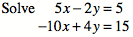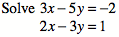 \[\begin{aligned} 3x-5y &= -2\\ 2x-3y &= 1\end{aligned}\]