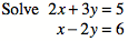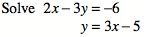 \[\begin{aligned} 2x-3y &= 2\\ y &= 3x-5\end{aligned}\]